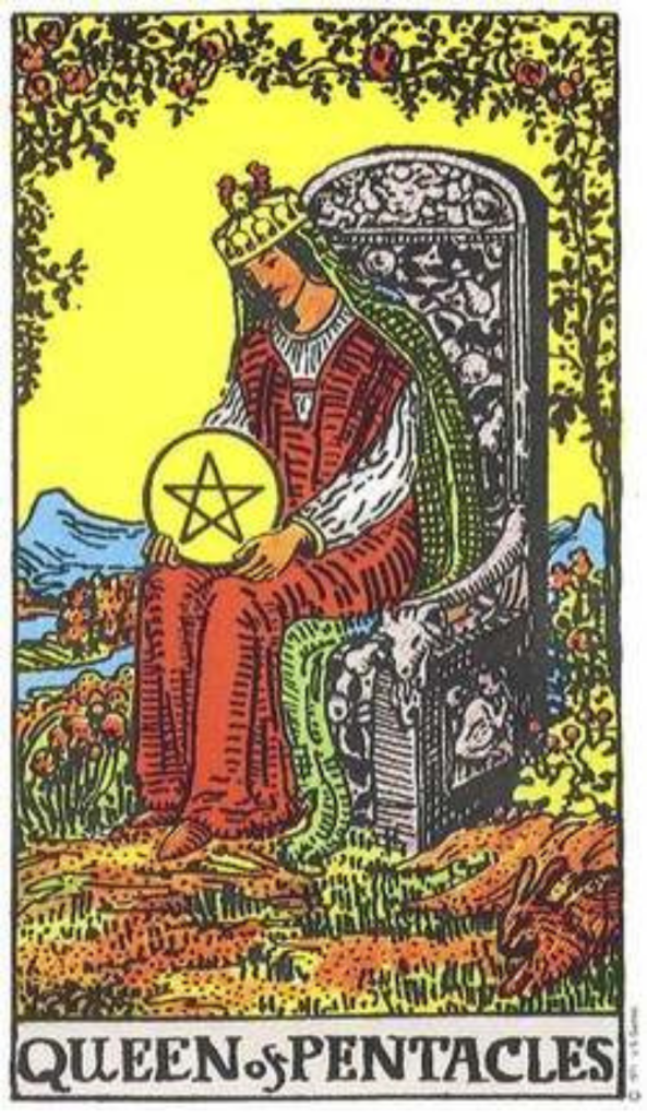 The Queen of Pentacles is the third court card of the pentacles suit in the minor arcana and represents mature feminine energy that’s nurturing, mothering, hard-working and independent. The Queen of Pentacles can represent you or another person who takes on these qualities as well.